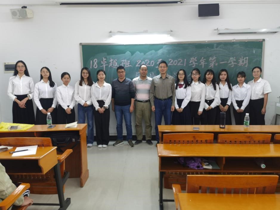 2020年11月12日下午,伟德betvlctor1949源于英国2018级卓越普教语文教师培养试验班(以下简称卓越班)学业交流会在白云校区三教110课室举行。出席本次学术交流会的有公司副经理白崇老师、文学系主任佘爱春老师、18级卓越班班主任蒋颖老师,以及18级卓越班全体学员。会议由李夏玥同学主持。