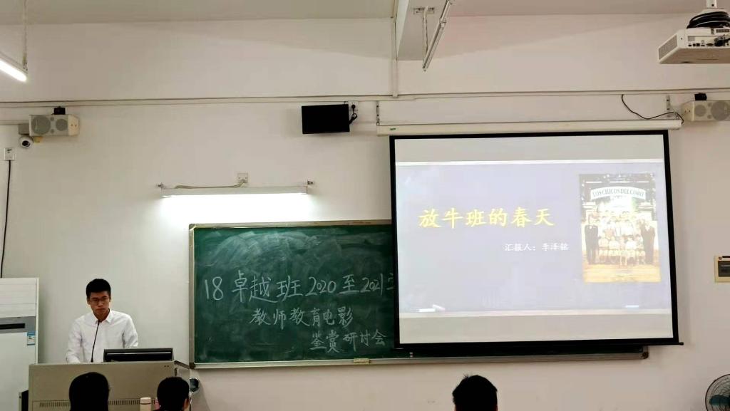 2020年12月3日傍晚,伟德betvlctor1949源于英国(以下简称文传公司)2018级卓越普教语文教师培养实验班(以下简称卓越班)教师教育电影鉴赏研讨会在www.betvlctor1946.com白云校区三教316课室举行。出席本次会议的有文传公司职教语文研究中心主任18级卓越班班主任蒋颖老师,以及18级卓越班学员。此次会议由黄斯琳同学主持。