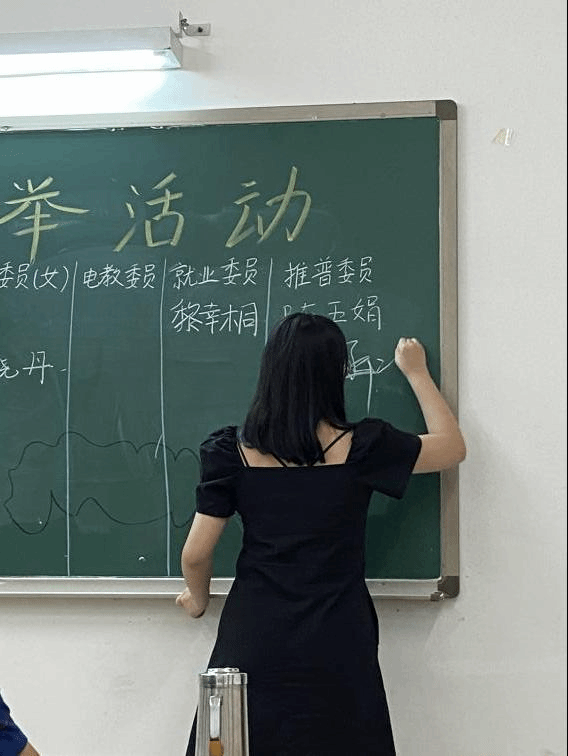 会议进程过半,同学们略有疲惫,台下玩手机的观众逐渐增多。此时,李佳纯大步登台,潇洒地在组宣委员一栏写下自己的名字,迅速吸引了众多同学的注意力。大一担班长的她凭借对服务精神的深入理解,获得了同学们的认可。紧接着,开朗的郑德明与优雅的赖晓丹分别当选男心理委员与女心理委员;条理清晰、台风清奇的黎幸桐也成功当选就业委员。最后,台风随和的陈玉娟与思路严谨的张涵冰共同参与推普委员的竞选,第一轮的班委竞选就此结束。