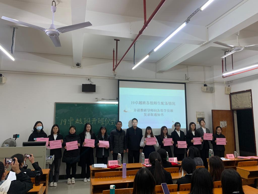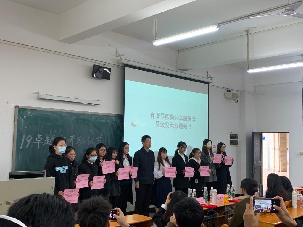 首先,卓越班班主任蒋颖老师给白云教育研究院三位老师分别是吴国珍老师、李秀芳老师、黄永红老师颁发教研导师聘书,接着教研导师代表吴国珍老师从教研角度向卓越班提要求并和其他导师向19中师卓越班各组同学颁发录取通知书。
