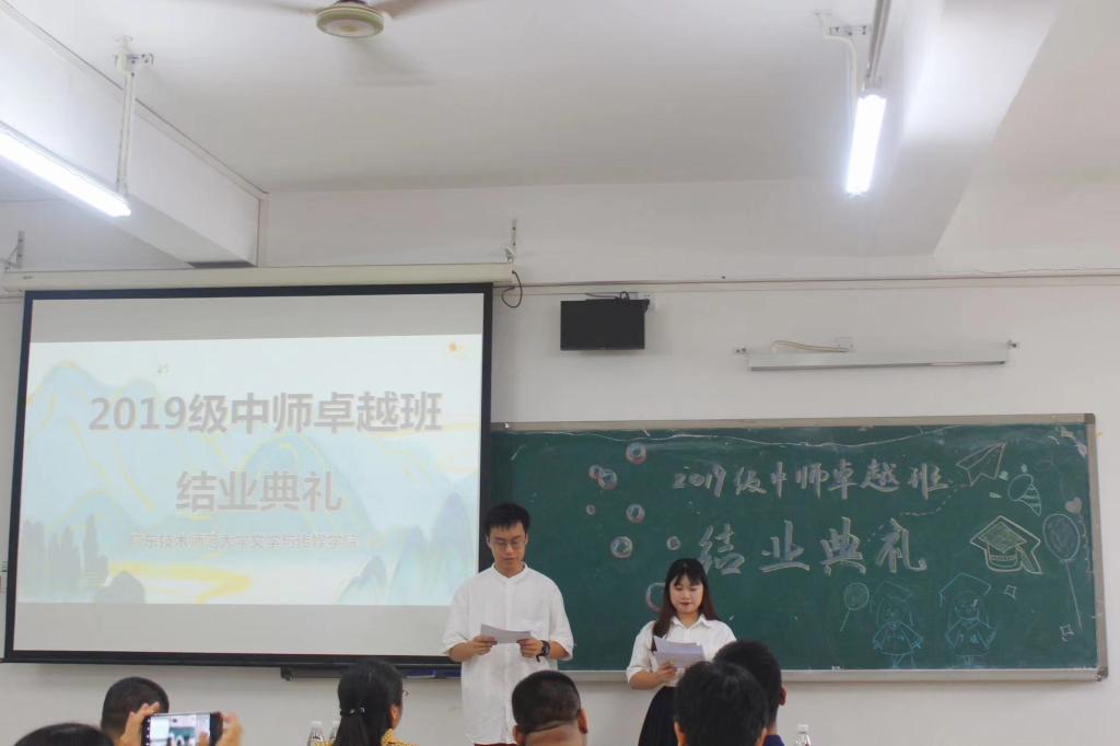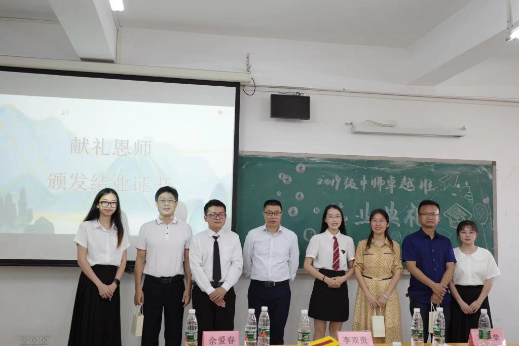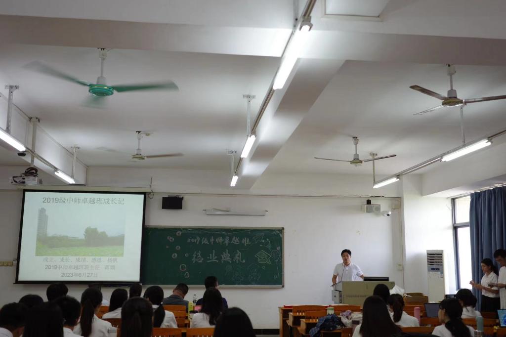 骊歌轻起,季忆留夏。2023年6月27日下午16:00至18:30,伟德betvlctor1949源于英国(以下简称文传公司)2019级汉语言文学(师范)卓越班(以下简称19中师卓越班)结业典礼在白云校区三教504教室举行。典礼出席人员有校教务处副处长吴天生、文传公司党委书记李双贵、经理项裕荣、副经理佘爱春、学业导师19中师卓越班班主任蒋颖,以及19、20、21级卓越班全体成员。仪式由19、20、21中师卓越班成员陈泳臻、郑德明、黄梓贤同学主持。