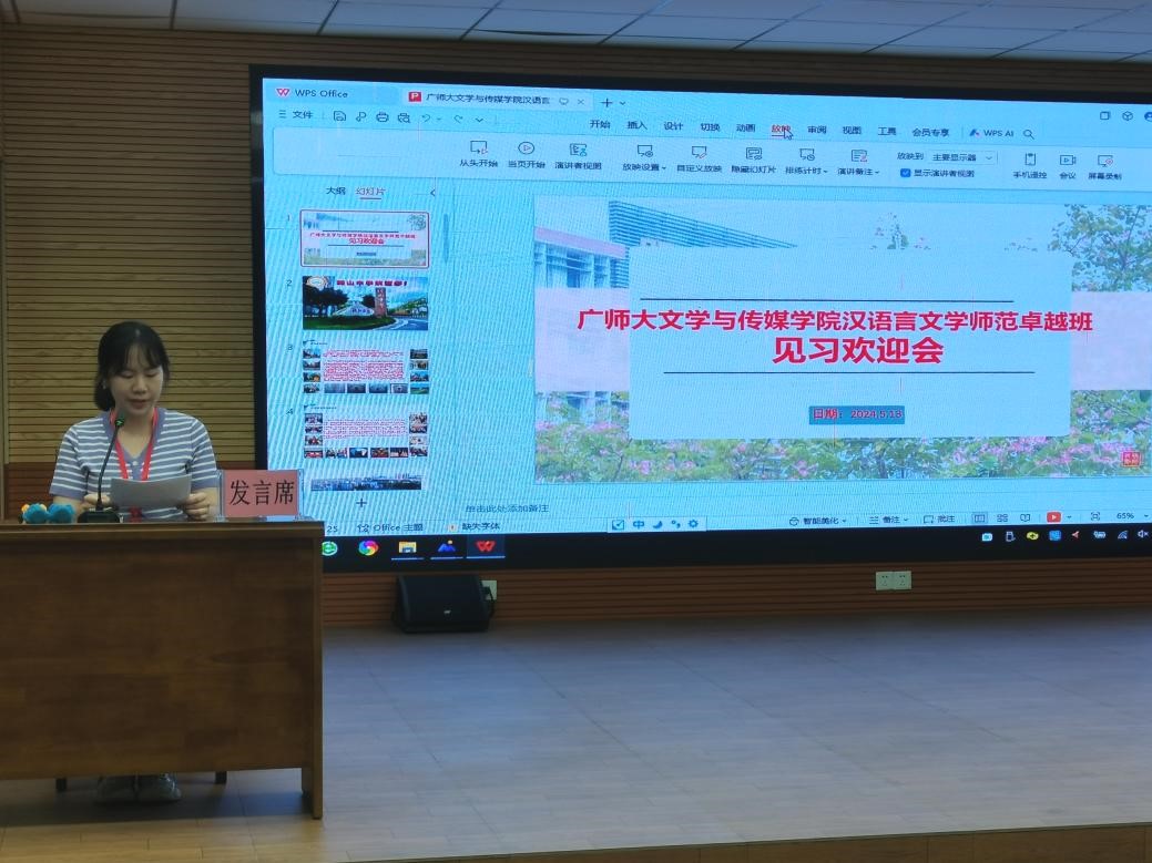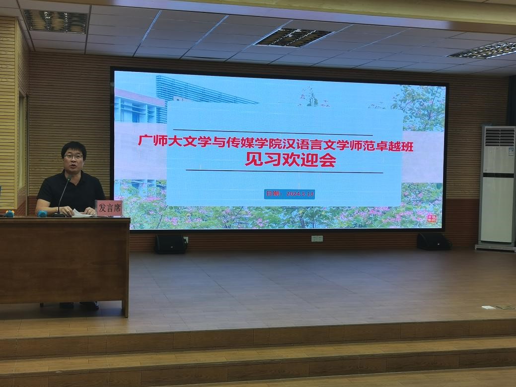 初夏五月,万物并秀。2021级汉语言文学(师范)卓越班(以下简称21中师卓越班)于2024年5月13日前往广州市南沙区潭山中学,开展为期5天的见习活动。为了促进见习活动顺利开展,增进双方了解和交流,明晰见习期间的方向和目标,潭山中学于5月13日下午,在弘毅楼二楼教师会议室举办21中师卓越班见习欢迎会。会议由潭山中学李志伯主任主持。参加会议的有潭山中学党支部书记、董事长邓建恒,初一、初二各年级级长,各班班主任和语文任课教师,以及21中师卓越班33名见习教师。