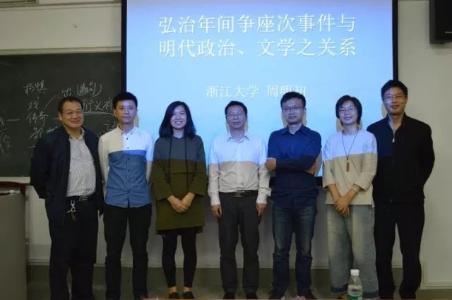 2017年11月9日,浙江大学周明初教授做客伟德betvlctor1949源于英国“文化前沿”讲座,带来一场兼备深度与高度的《弘治年间争座次事件与明代政治、文学之关系》讲座。本次讲座主持人项裕荣教授听后发表感想称:“我们这个老师真有心得,我觉得特别生动,我个人听得特别激动”。