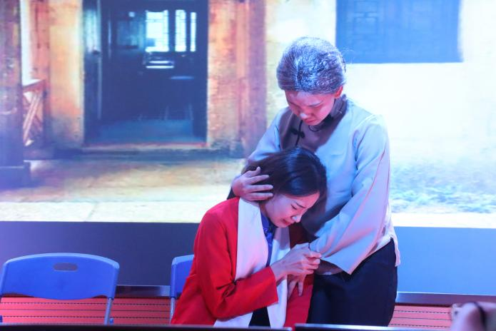 七个话剧团课聚焦艰苦奋斗的精神实质,鲜明深刻地展现了爱国主义精神。星星之火可以燎原,《江姐》作为第一个展示的作品,展现出革命女性坚如磐石的心智,那株“傲雪红梅”在革命烈火中永生。在《五四觉醒》中可以听到五四青年那振聋发聩的呼喊,看到五四青年的觉醒奋斗模样。《百年家书》中革命烈士爱国深切,历经百年,当代青年更是秉持信念,艰苦奋斗。《梦乡村》则演绎出了奋斗于乡村振兴第一线的青年群像;《出山》中的张桂梅老师勤勤恳恳,无私奉献,用生命托起大山的希望。《奋斗路上》展现出了科研工作者被质疑却又奋起向上的模样。最后,《芷微》中物理双姝如微草般矮小蓬勃,坚定生长,展现科研路上的女性力量。