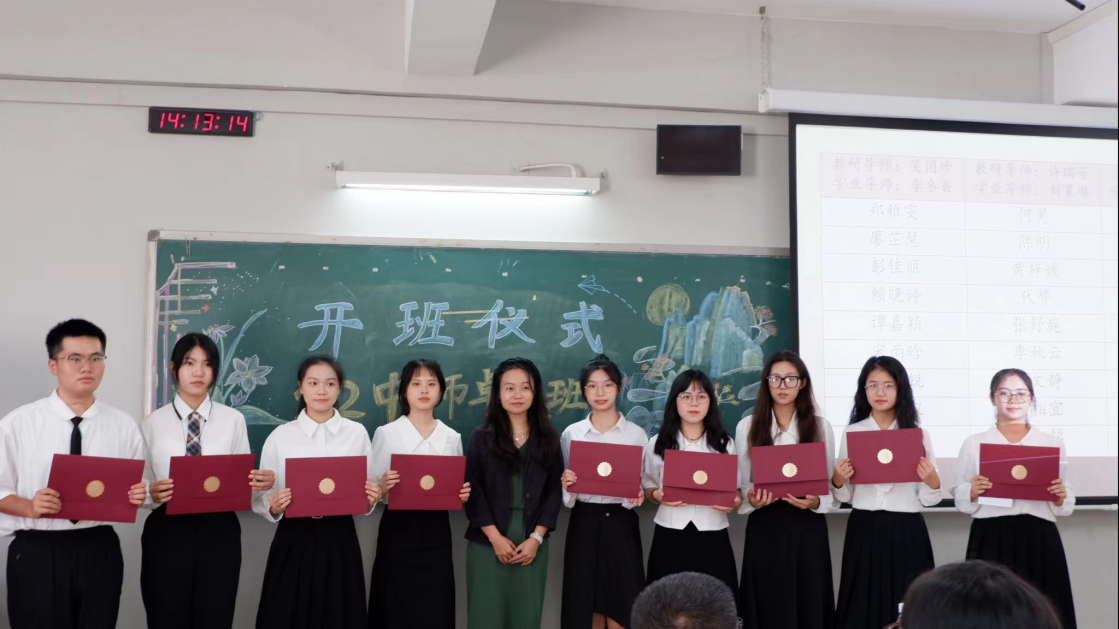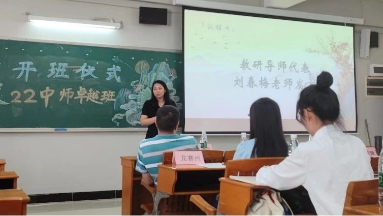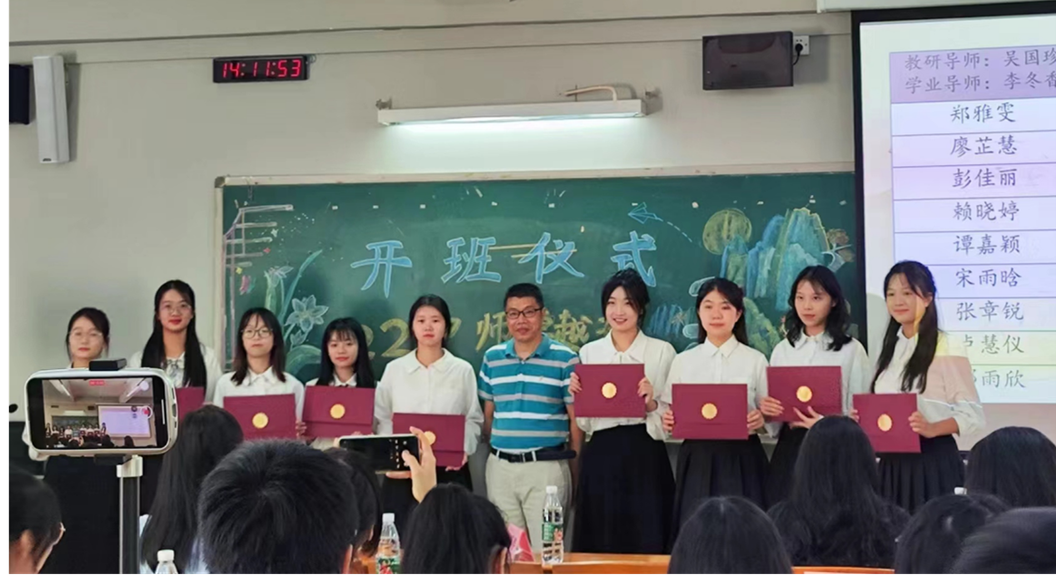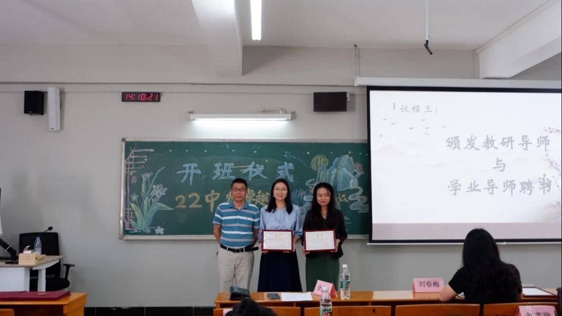 随后,主持人宣读了22中师卓越班的分组情况,并且公布了各组的教研导师、学业导师以及成员。宣读分组情况后由各组导师向各组学员颁发录取通知书。