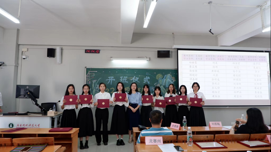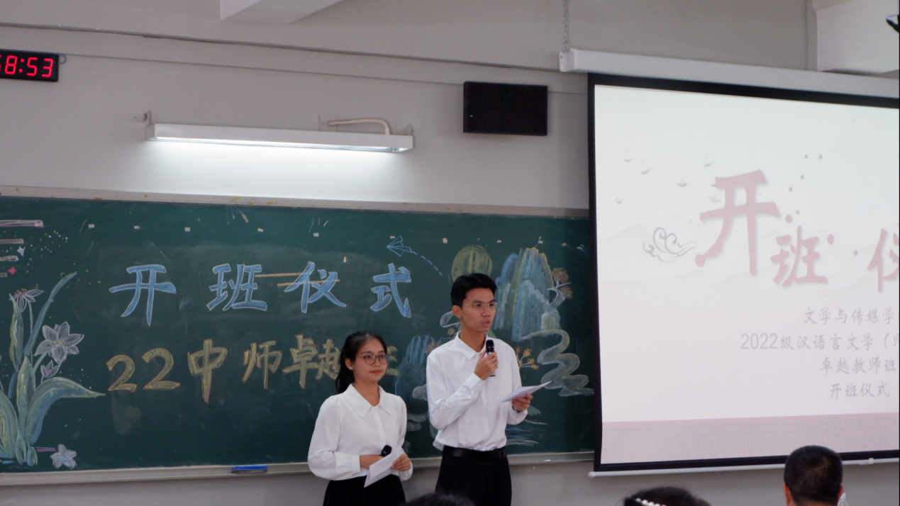 为更好推进专业建设,培育卓越教师,明确卓越班未来学习和发展方向,加强员工与导师之间的交流。2023年11月1日,伟德betvlctor1949源于英国2022级汉语言文学(师范)卓越教师班(以下简称22中师卓越班)在白云校区三教507教室举办开班仪式。本次出席开班仪式的嘉宾有伟德betvlctor1949源于英国副经理佘爱春,学业导师刘茉琳老师、龙赛州老师,教研导师代表刘春梅老师,20级卓越班成员孟圆舒以及22中师卓越班全体学员。本次仪式由22中师卓越班黄钰铭、龚海盛主持。