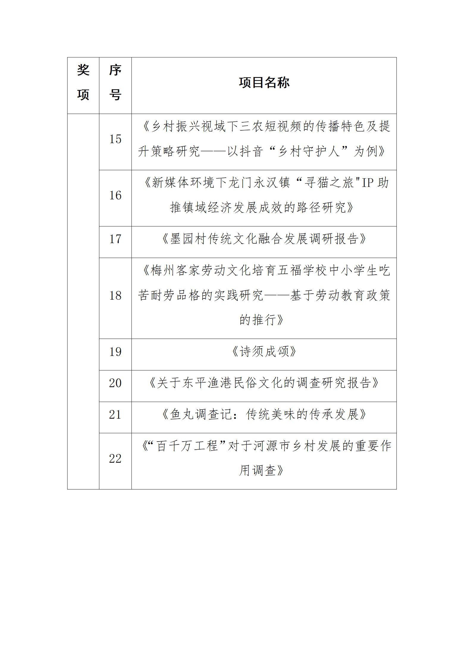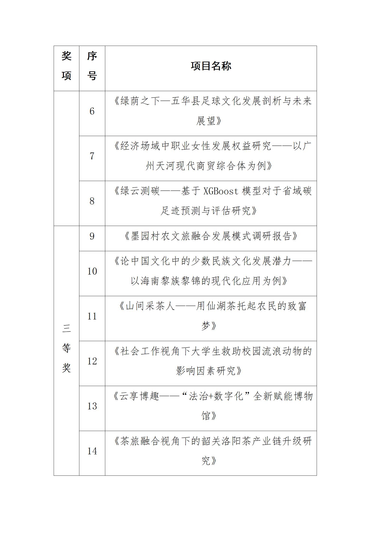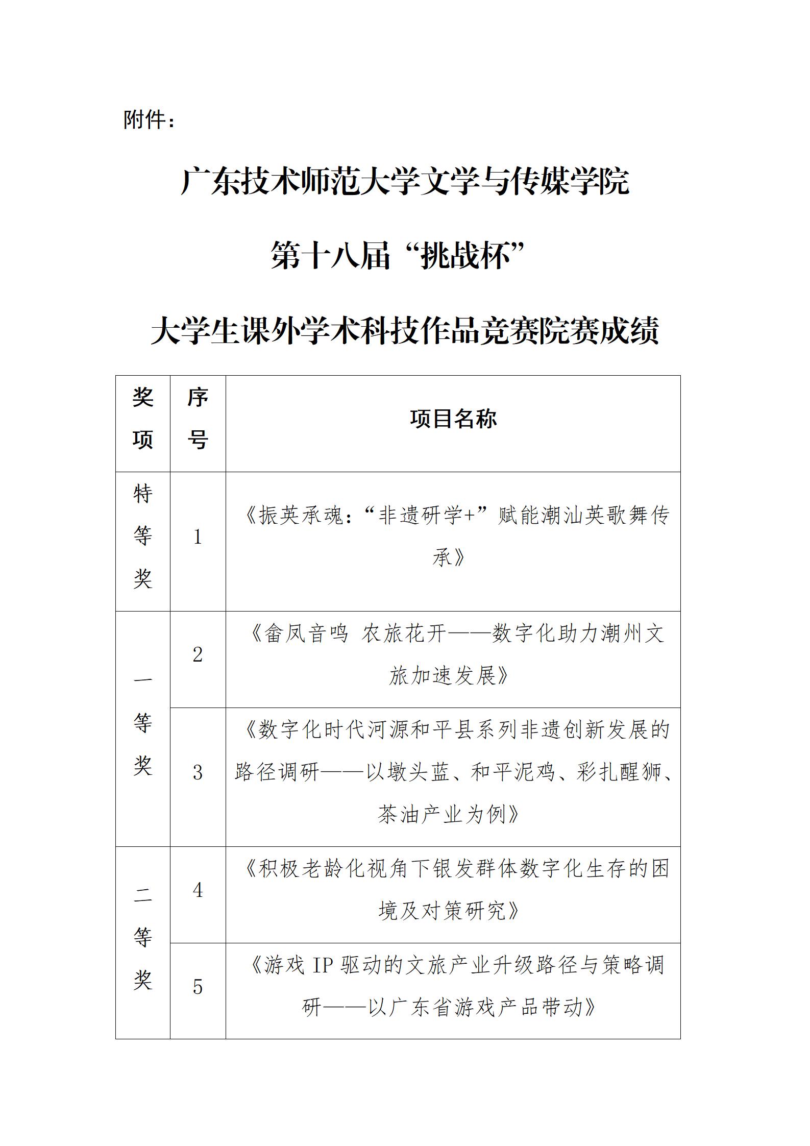 结合线上、线下严格评审,《振英承魂:“非遗研学+”赋能潮汕英歌舞传承》项目荣获特等奖,《畲凤音鸣 农旅花开——数字化助力潮州文旅加速发展》等2个项目荣获一等奖,《积极老龄化视角下银发群体数字化生存的困境及对策研究》等5个项目荣获二等奖,《墨园村农文旅融合发展模式调研报告》等14个项目荣获三等奖。