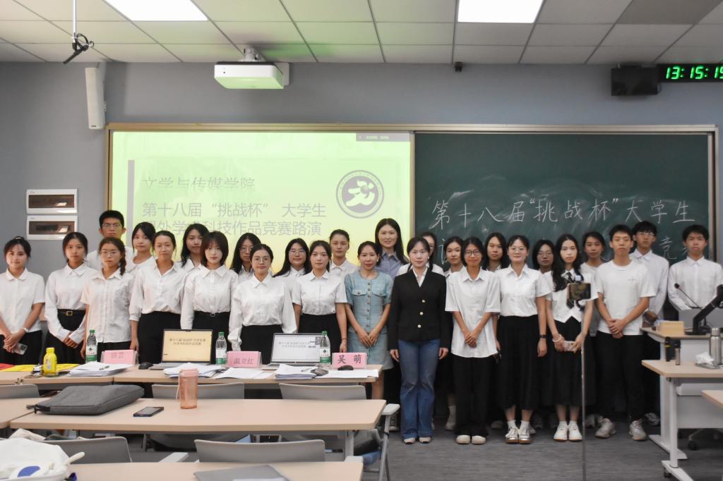 经参赛报名、作品递交,本次比赛共有22支队伍进入院赛路演。本次路演采用汇报展示与现场答辩相结合的方式,各参赛队伍主讲人依次上台,向评委和观众展示团队成果。他们以创新的思维、扎实的数据、缜密的逻辑,围绕项目背景、前瞻意义、当前现状、发展前景和应用价值等方面进行阐述,聚焦科技创新、未来产业、乡村振兴和生态环保等多个领域,充分展现了文传学子锐意创新、与时俱进、勇于挑战的科研精神和青春风采。