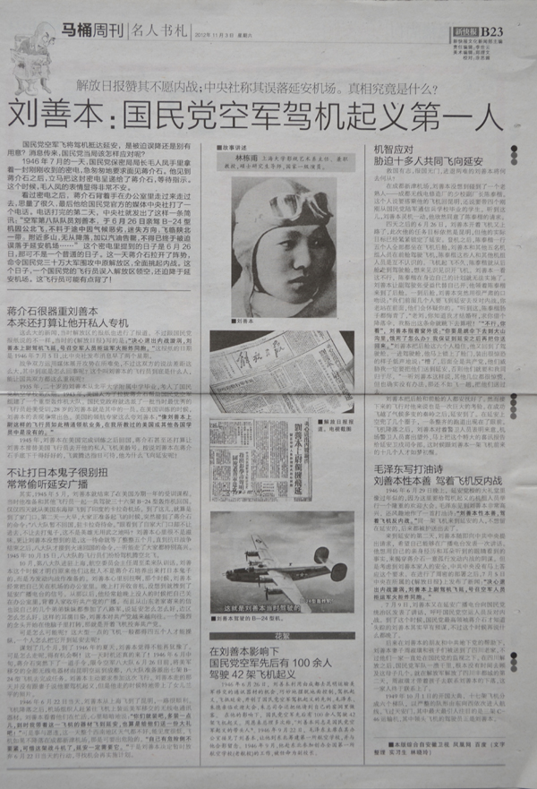 【新快报】刘善本:国民党空军驾机起义第一人---林晓玲