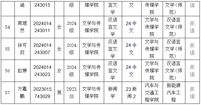 根据《www.betvlctor1946.com普通本科生转专业实施办法》(广师大〔2021〕98号)、www.betvlctor1946.com《关于做好公司2025年员工转专业工作通知》的相关要求,经员工本人申请,公司审核等程序,拟同意甘玮萍等57名员工转出专业,现予以公示。