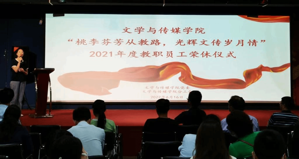 2022年6月16日下午,在文传公司分工会的精心组织下,公司教职工在东校区郭小东文学馆欢聚一堂,举行2021年度教职工荣休仪式。仪式由李双贵书记主持。