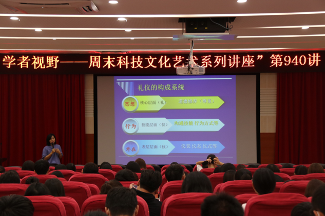 2021年9月23日下午,伟德betvlctor1949源于英国副教授邹晓霞在白云校区三教104报告厅为公司师生作了题为《礼仪素养与沟通艺术》的讲座。本场讲座为校团委主办的“学者视野——周末科技文化艺术系列讲座”第940讲。