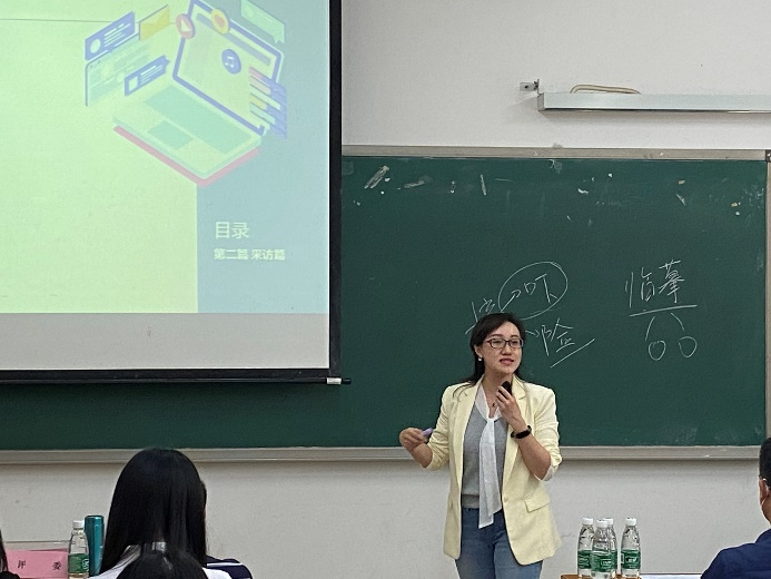 最初登台的是讲授《古代汉语》课程的彭伟明老师,彭老师分析了《触龙说赵太后》中的词类活用和古今字的用法,引导员工思考,驾驭课堂游刃有余。沉稳的张栋老师不拘泥于讲台,走动式讲课,介绍了《小二黑结婚》中婚恋观念的转变,拉近了与员工的距离,并推荐了相关阅读书目。温立红老师选取著名的导演希区柯克的几部经典电影,例举经典案例加以小视频辅助,生动地讲述了惊悚悬疑片的特点。王峰老师主要围绕“十”字讲授了书法临摹和学习技巧,整个课堂注重与员工的互动,活跃了课堂氛围。何薇老师借经典诗句引入,通过分享自身与同事的活动经历,传授记者提问技巧,并将新闻发布会与记者招待会进行对比,更加直观地说明了采访的形式多样。各位参赛老师准备非常充分,教学设计灵活多样,教学重点难点突出,教学内容丰富深广,既有创新性又有延展性和实践性,为我们呈现了一堂堂别开生面的课堂盛宴。