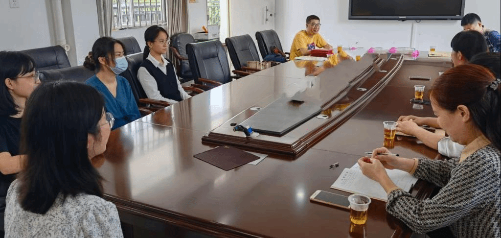 (图1 佘爱春副经理一行与九佛二中领导、实习生座谈交流)