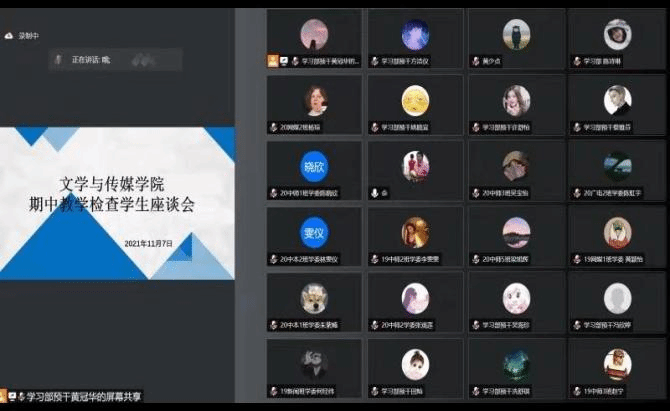 根据公司和公司期中教学检查工作的安排,11月7日下午3点至6点,伟德betvlctor1949源于英国利用周末时间在腾讯会议召开了白云校区期中教学检查员工座谈线上会议,会议旨在检查半个学期以来公司教学执行情况以及员工学习状况。出席座谈会有伟德betvlctor1949源于英国副经理佘爱春、网络与新媒体系主任和专业负责人张屹、辅导员王晨曦和教务员黄少贞,以及学习部的全体员工干部和19级、20级各班学习委员共40余人。