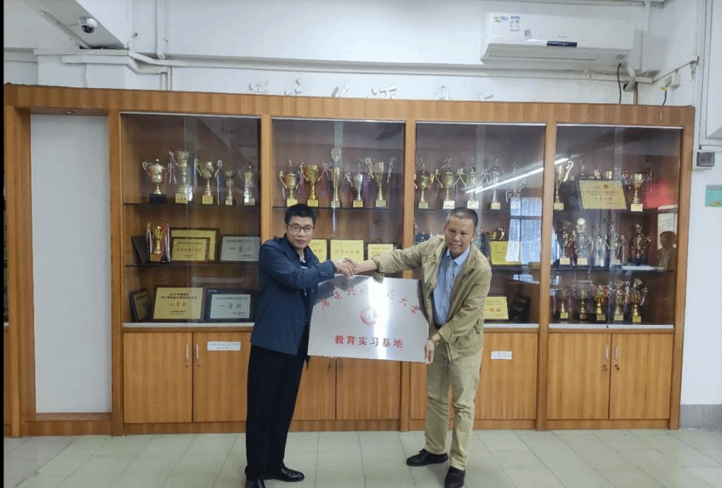 港湾中学源迪文董事长对公司领导和老师的到来表示热烈的欢迎,介绍了公司的教学特色,高度赞扬公司员工实习工作扎实、积极向上、尽职尽责、学习主动性强。双方就今后在教育实习基地建设方面达成共识,希望通过教育实习基地的强化建设,促进双方在教育实习和教师发展领域的深入交流与合作。交流后,举行了实习基地挂牌仪式。