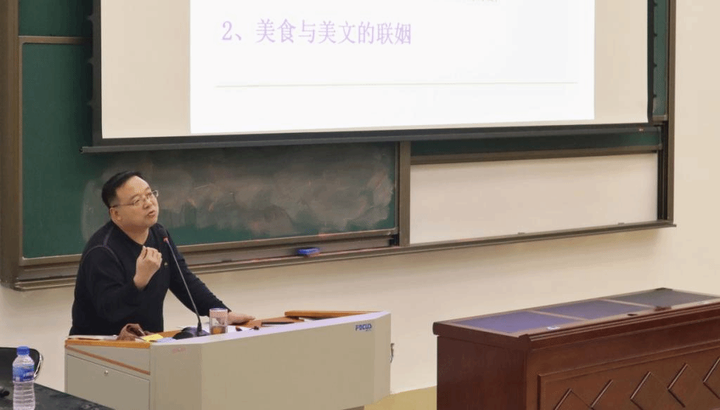 杜建华教授结合自身经历,从饮食源头、历史追溯、美食现象与镜像三个方面进行讲述。杜建华教授还在讲座中途穿插播放不同美食纪录片的片段,让同学们能够切身体会到纪录片中拍摄视角、镜头切换、文案撰写中的差别,并为日后有兴趣从事相关行业的同学们提供思路,同学们被杜建华教授透彻的评论分析和纪录片中令人垂涎欲滴的画面所吸引。最后,杜建华教授向同学们推荐了三种不同类型的美食纪录片,引导同学们在观看时能够去思考影片背后所蕴含的功夫,与实践相结合,以此提升自身的专业能力。