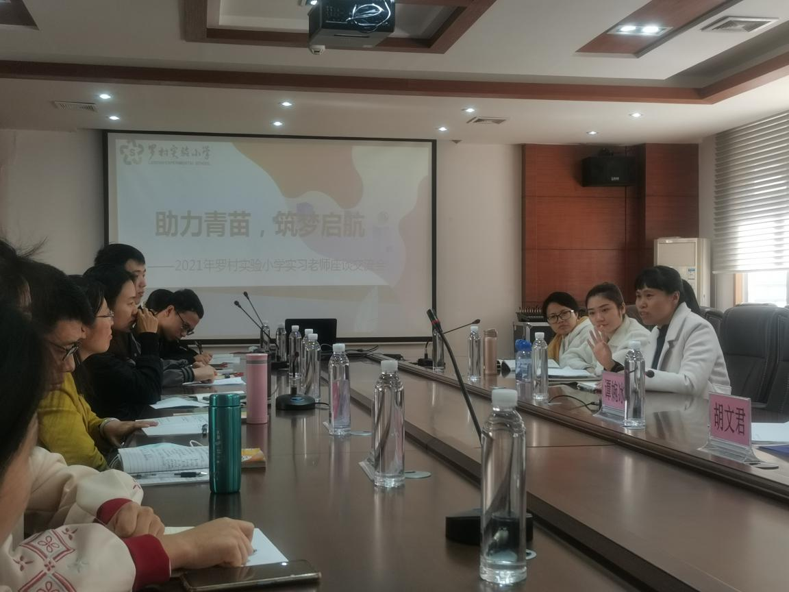 罗村实验小学谭婉冰副董事长在会上对公司领导和老师的到来表示热烈的欢迎,并介绍了公司教学和教研特色,高度赞扬了公司实习生在实习期间的表现。
