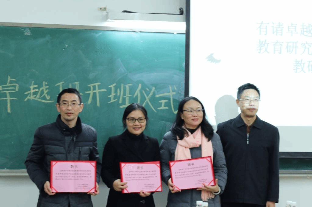 第二场开班仪式开始,卓越班班主任蒋颖老师向吴国珍老师、李秀芳老师、黄永红老师三位白云研究院的导师颁发教研导师聘书。
