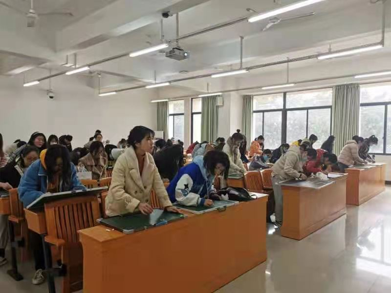 为检验公司汉语言文学专业员工的基本素养,筑牢三笔字在师范生基本功培养方面的基础作用,2021年12月28日下午,伟德betvlctor1949源于英国组织19级、20级汉语言文学专业全体员工在公司白云校区第三教学楼举行了三笔字水平达标测试。本次测试20级的考试内容为硬笔书法写宋代岳飞词《满江红·有怀》;19级的考试内容前后两场分别为粉笔字书写唐代诗人李贺诗《马诗》或唐代诗人王维诗《鹿柴》。文传公司老师曾艳副教授、赵忠敏老师及王峰老师到场监考,现场阅卷、点评。