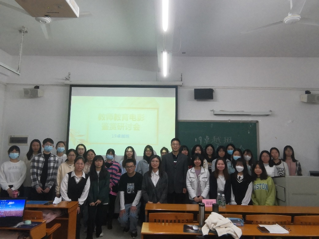 最后,师生一同合影留念,此次教师教育电影鉴赏研讨会顺利落幕。通过这次研讨会,同学们认识了多种多样的教育思想与教育理念,对教书育人有了更深刻的感悟。“路漫漫其修远兮”,希望同学们继续在教育的道路上上下求索,争取更上一层楼。