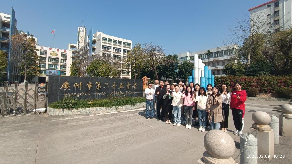 为进一步提升公司学科教学(语文)教育硕士培养质量,落实公司公司产品目标,推进公司研究生实习基地建设,3月9日上午,公司2020级14位学科教学(语文)硕士研究生在蒋颖老师带领下赴广州市白云区广州市第六十五中学江高校区(以下简称“广州市六十五中”)扩展为期一个学期的教育实习活动。广州市六十五中董事长助理、教师发展中心主任何善波老师、办公室副主任谌丽老师、高二级长罗锐老师热情接待了蒋老师一行。