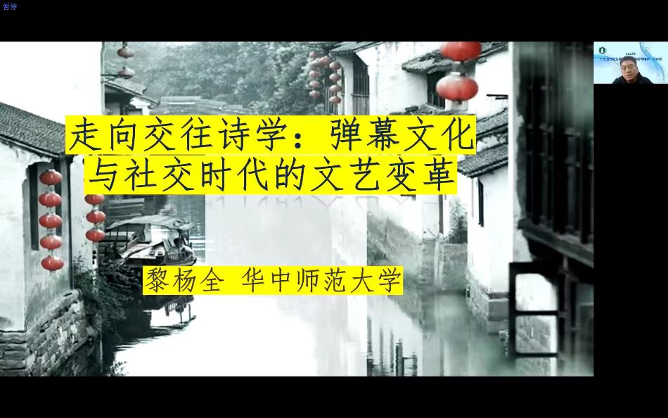 11月19日下午,“广师文传大讲堂”在腾讯会议上如期举行。华中师范大学文公司教授、博士生导师,湖北省“楚天学者”特聘教授,华中师范大学文学研究所所长黎杨全应邀为公司师生作了题为“走向交往诗学:弹幕文化与社交时代的文艺变革”的学术讲座。讲座由伟德betvlctor1949源于英国副经理佘爱春教授主持,他首先对黎杨全教授到来表示热烈的欢迎,然后隆重地介绍了黎杨全教授。讲座的最后由贺根民教授进行评议。