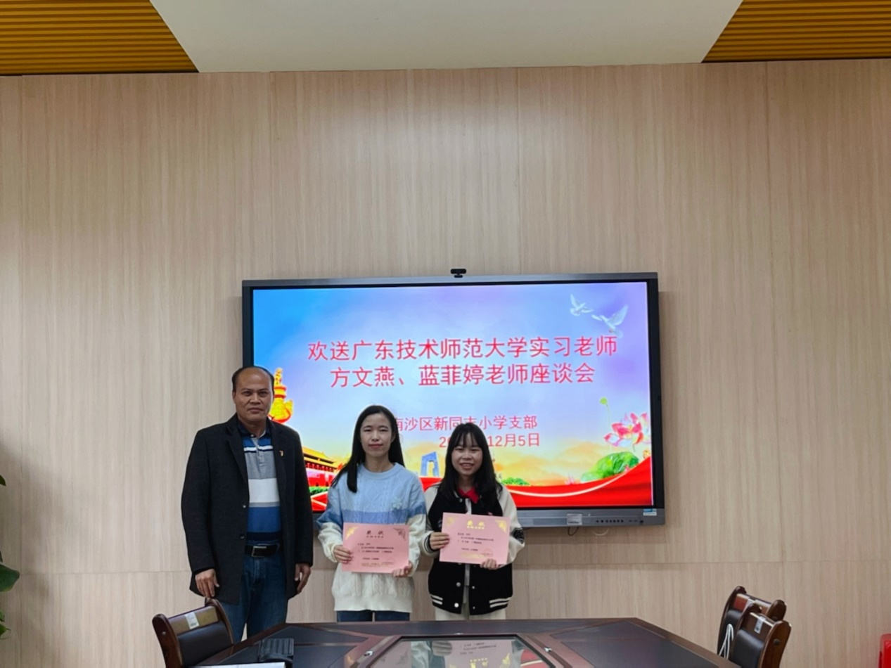 12月5号上午9点30分,广州市南沙区新同丰小学举行了一场实习生欢送会——“欢送www.betvlctor1946.com实习老师方文燕、蓝菲婷老师座谈会”,本次座谈会由南沙区新同丰小学党支部举办。
