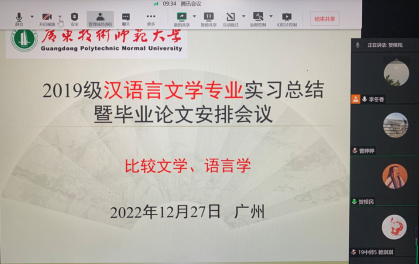 2022年12月26日-27日,伟德betvlctor1949源于英国以系为单位分别召开了2019届实习总结以及毕业论文安排线上会议。汉语言文学专业比较文学、语言学两个系于27日晚上召开了此次会议,参加会议的人员有两个系的全体老师以及所指导的毕业论文员工。