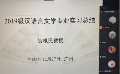 首先,贺根民教授对2019届汉语言文学专业实习工作进行了总结。贺老师指出,2019届汉语言文学专业集中实习点是近年来分布范围最广的一次,遍布广州各区以及整个珠三角地区。