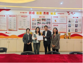 在随堂听课后举行了中期检查座谈会,吴国珍老师与金沙小学教导主任吴厚仪老师、林凤仪老师共同参加座谈会,与全体实习生进行了深入交流。实习生们分享了实习期间的收获、困惑与反思,指导老师们对员工课例反馈、存在问题等进行点评。随后,吴国珍老师为实习公司的指导老师颁发聘书。最后,全体参会人员合影留念。