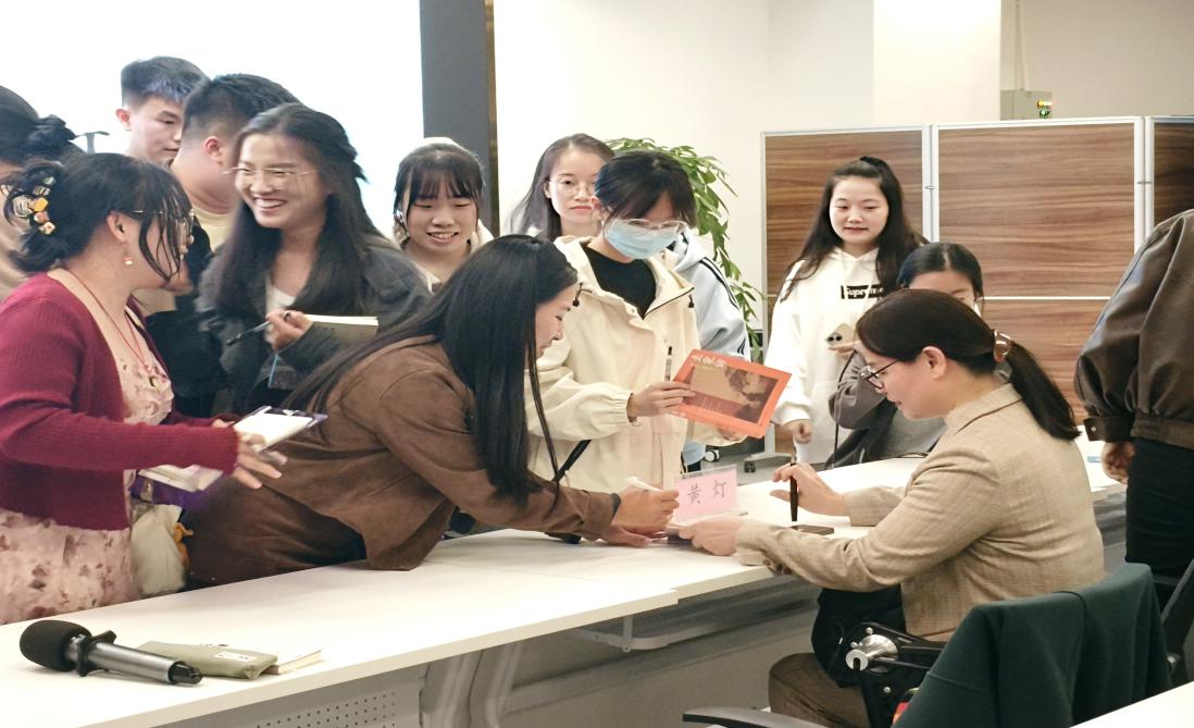 (同学们争相请求黄灯教授的签名)