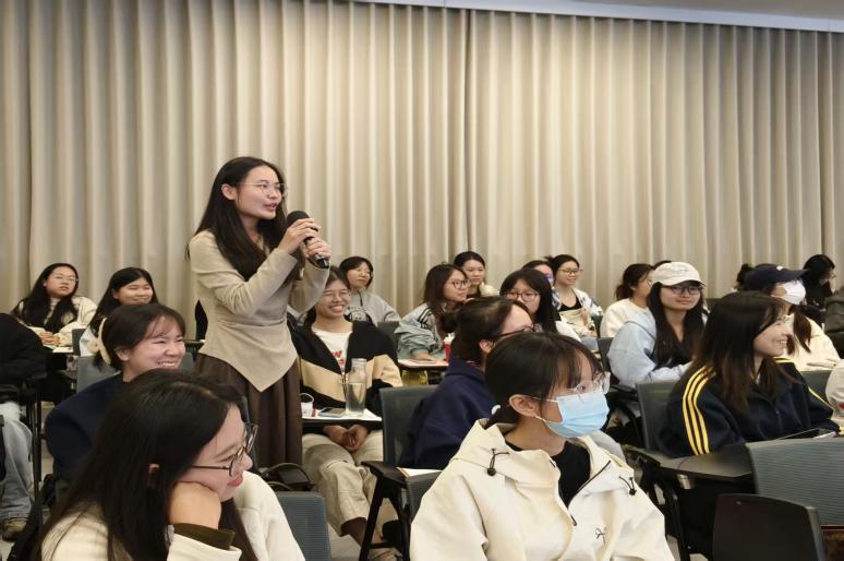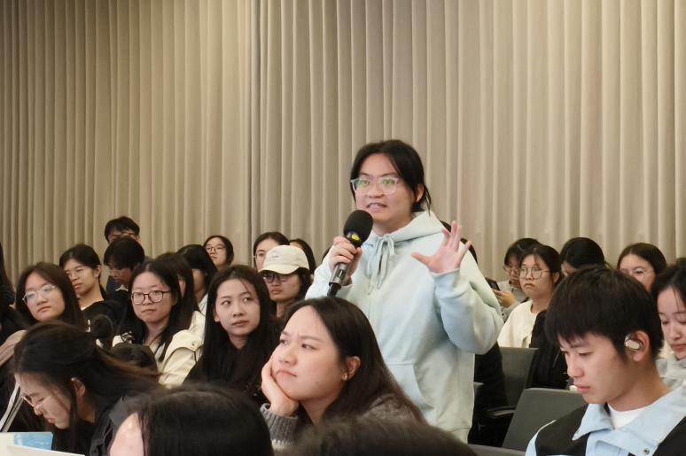 分享中,黄灯教授以风趣幽默的表达串联个人的成长故事,结合大量鲜活案例剖析当下青年的命运轨迹,既让在场同学倍感共鸣,也自然引出了对青年成长的恳切建议。她鼓励同学们:要以兴趣为方向,找到自身优势,沉下心锤炼特长。同时,始终保持对社会的敏锐感知,不被网络上的极端观点所裹挟,坚信现实中真实的人与事所传递的力量。与此同时,最重要的是要重视自我认同与自我唤醒,因为教育的终极意义,正是助力每个人实现完整的个人成长。