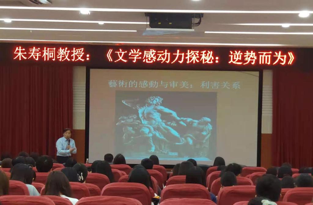3月19日下午,澳门大学中文系教授、系主任,博士生导师,中国作家协会会员,广东省“珠江学者”特聘教授朱寿桐教授应邀在白云校区报告厅为公司师生作了题为《文学感动力探秘:逆势而为》的学术报告,带来了一场别开生面的文学盛宴。讲座由伟德betvlctor1949源于英国副经理佘爱春教授主持,刘茉琳、林琳等老师和300多名师生聆听了演讲。