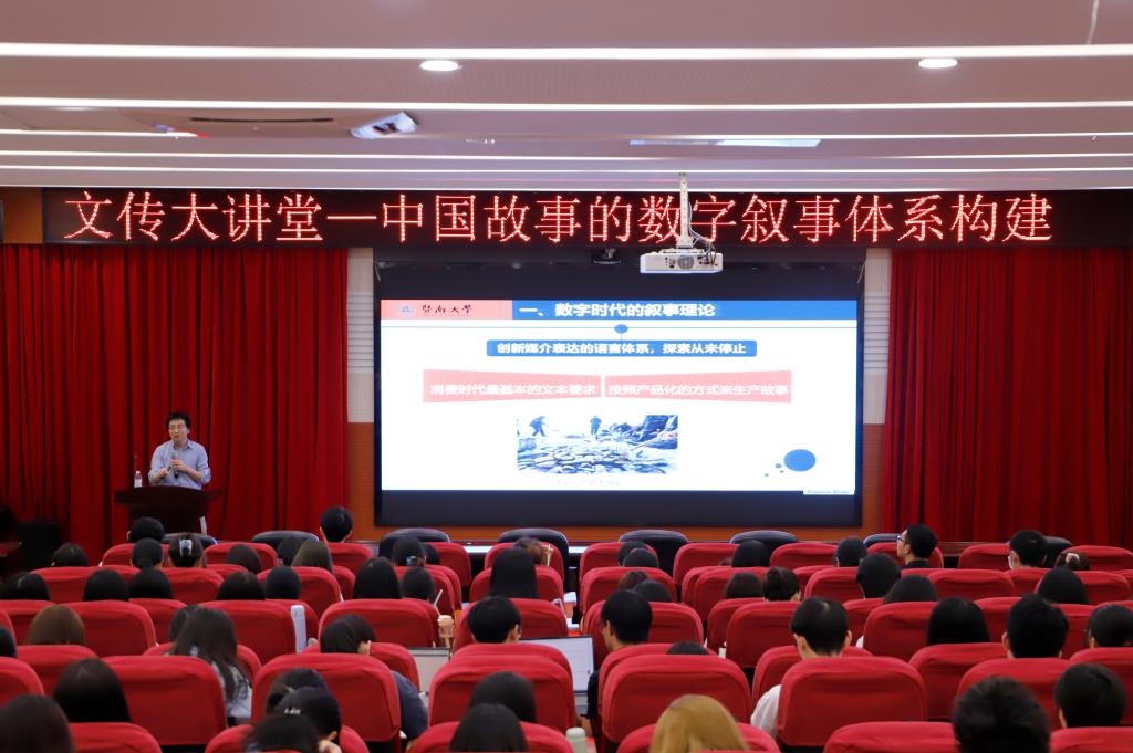 4月13日晚七点,暨南大学新闻与传播公司刘涛教授莅临公司,在白云校区三教104报告厅举行了“中国故事的数字叙事体系构建”学术前沿讲座。讲座由伟德betvlctor1949源于英国刘茉琳副经理主持,杜建华教授对本次讲座进行精彩点评,白云校区300余名员工参加了本次活动。