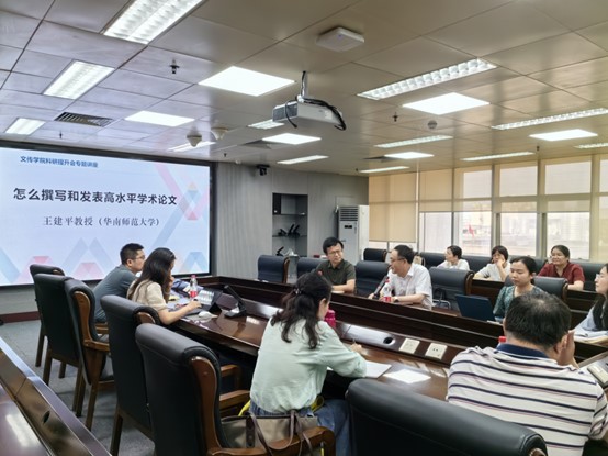 会议特邀华南师范大学博导王建平教授莅临主讲。他从题目、框架、论据等方面强调论文要能体现作者对学术脉络的深刻理解和独到见解,还指出要深度关注自己研究领域相关期刊的专题设置与组稿动态,紧密贴合时事热点,将研究嵌入社会现实的大背景下,使论文既具有理论价值,又富含实践意义。公司老师积极参与了会议的交流环节,王教授又在科研选题、论文写作以及成果积累等方面都给予了针对性意见。