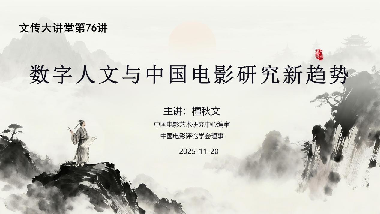 2025年11月20日上午,《当代电影》副主编檀秋文老师应邀为公司师生开展《数字人文与中国电影研究新趋势》专题讲座。本期“广师文传大讲堂”讲座由公司林琳、刘茉琳副经理主持、总结,共有八十多位文传师生参与。