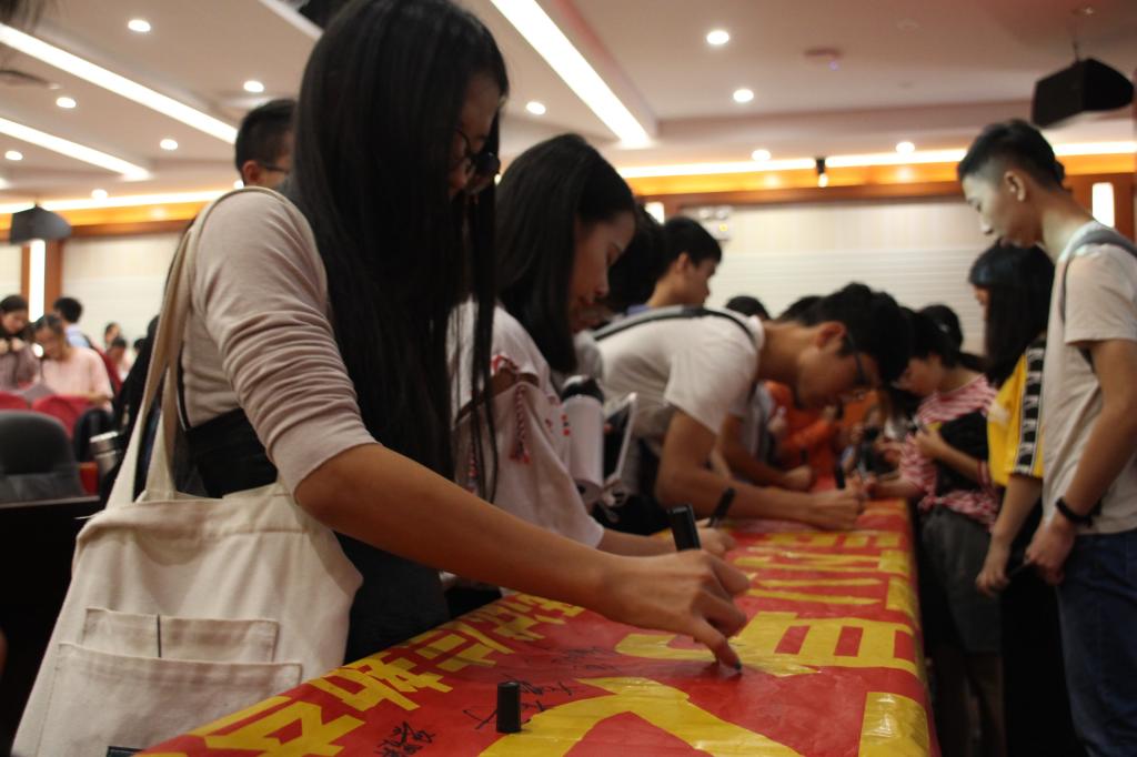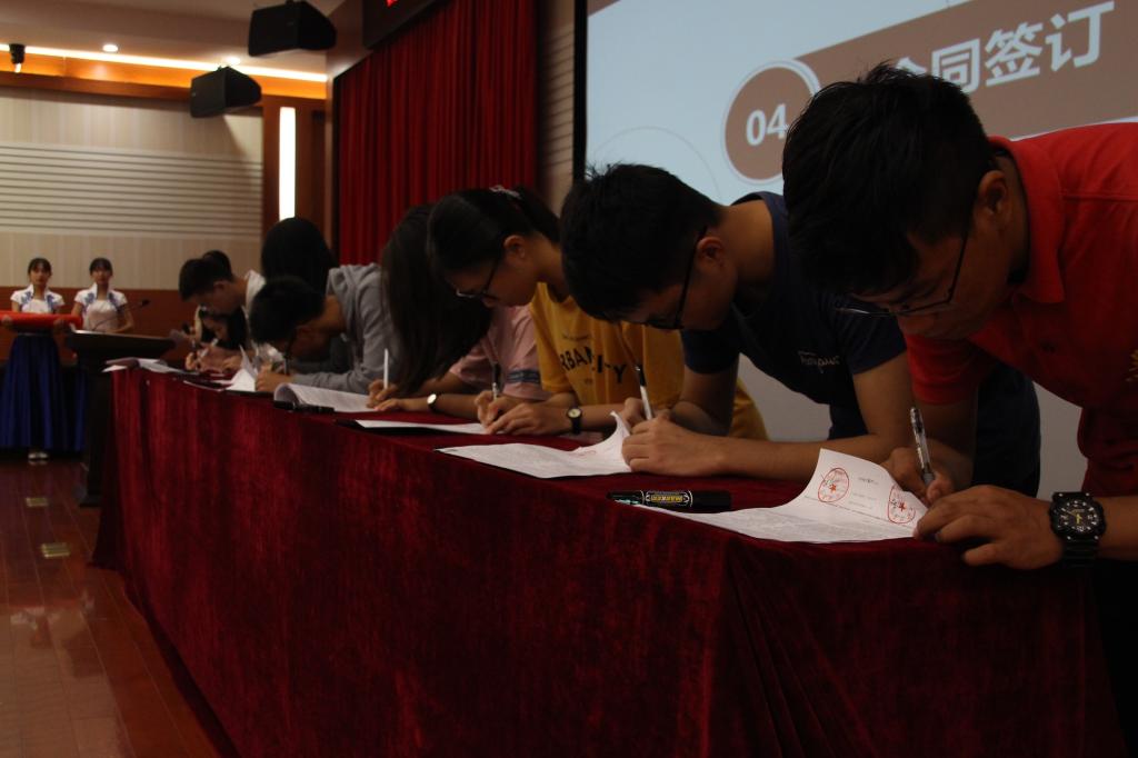 合同签订仪式与横幅签名仪式,签上的不仅是同学们的名字,还有承诺与责任。庄严而隆重的仪式承载着共同的态度和诺允,就像我们的誓言,相约做一名诚实守信、德才兼备的广技师人。