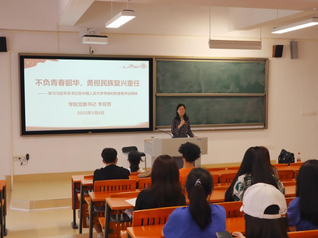 李双贵首先为同学们送上青年节的诚挚祝福,她以“不负青春韶华,勇担民族复兴重任”为题,从初心使命、责任担当和建设要求三个方面展开讲述,带领同学们回顾中国青年在不同历史阶段的使命担当,列举各时期杰出青年人物故事,激励广大同学踔厉奋发,勇毅前行,在学好专业本领的基础上,提高素质,全面发展,勤于实践,做奉献社会之人。最后,李双贵强调,每一代人都每一代人的使命,青年人要提升自我的价值定位,主动联系国家命脉,争做堪当民族复兴重任的时代新人。