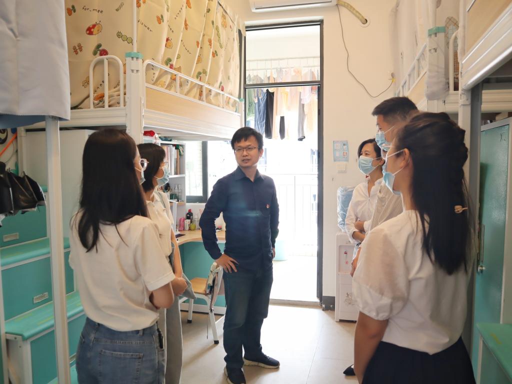 课后,公司领导老师一同走访了员工宿舍,深入了解疫情防控期间员工线上教学情况,并与同学们进行了亲切的交流,详细询问大家在校学习生活情况,同时就学习状态、学习效果、课余活动、宿舍文化建设等问题给予建议和解答。