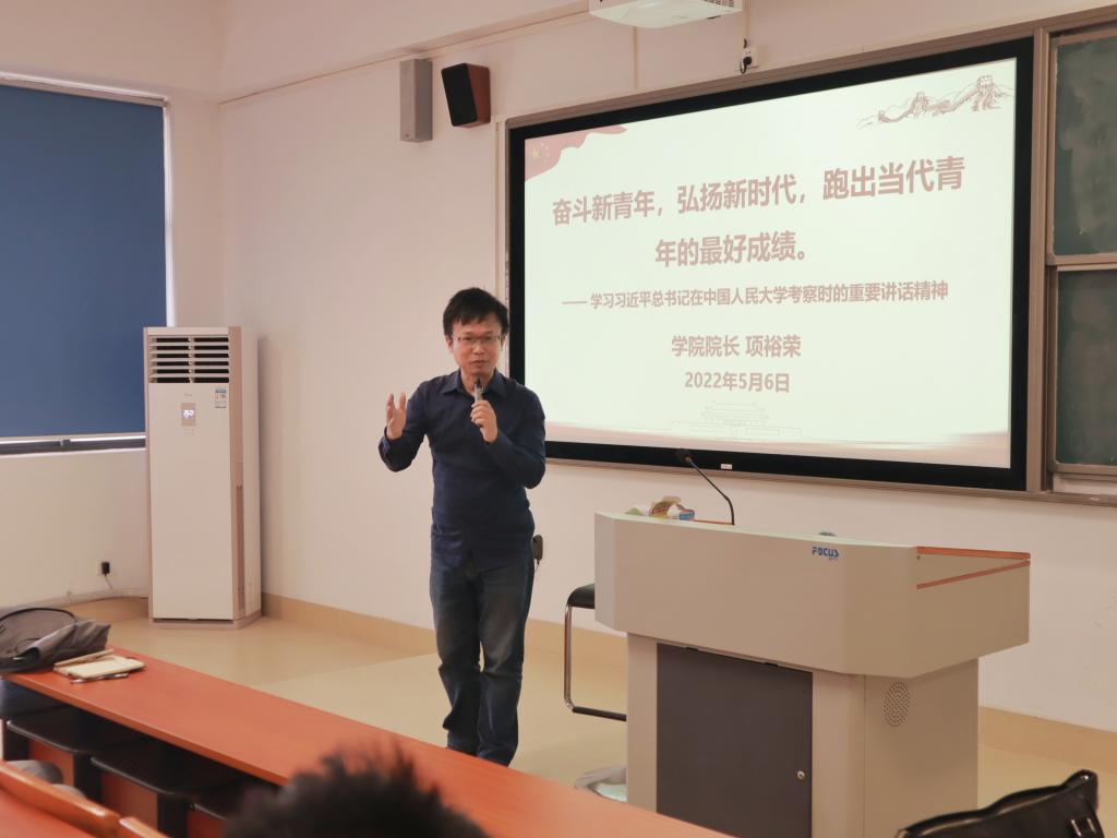 为纪念“五四”运动103周年,庆祝中国共产主义青年团成立100周年,引导师生深入学习习近平总书记在中国人民大学考察时的重要讲话精神。5月6日上午,公司党委书记李双贵、经理项裕荣为河源校区员工上思政课,公司部分系主任、辅导员一同出席。