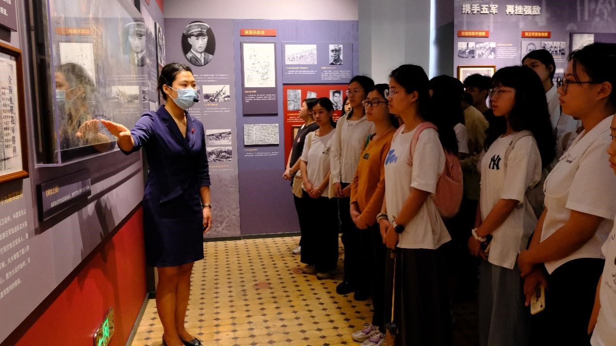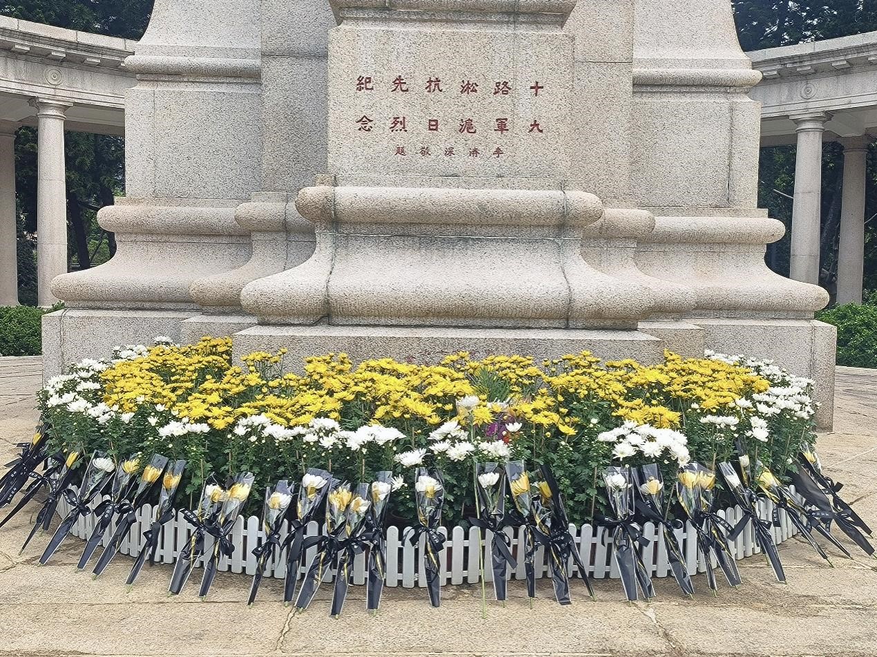 在十九路军淞沪抗日将士陵园讲解员的带领下,党支部书记朱砂、党员和积极分子们一同参观陵园内的先烈纪念馆,重温先烈们的光辉形象和伟大贡献。参观环节过后,全体师生移步至先烈纪念碑前,庄重举行了默哀献花仪式。在十九路军淞沪抗日将士陵园那肃穆而神圣的氛围中,大家列队肃立,深鞠躬礼,井然有序地将手中洁白的菊花献予长眠于此的英魂,无声地表达了对先烈们无比沉痛的哀思和无上崇敬之情。随后,全体师生前往参观抗日亭,员工代表蒋惠文、陈璇、温紫霞在抗日亭内发表演讲。最后,全体师生一同前往观赏浮雕墙,感受浮雕艺术所再现的激烈悲壮的战争场景。