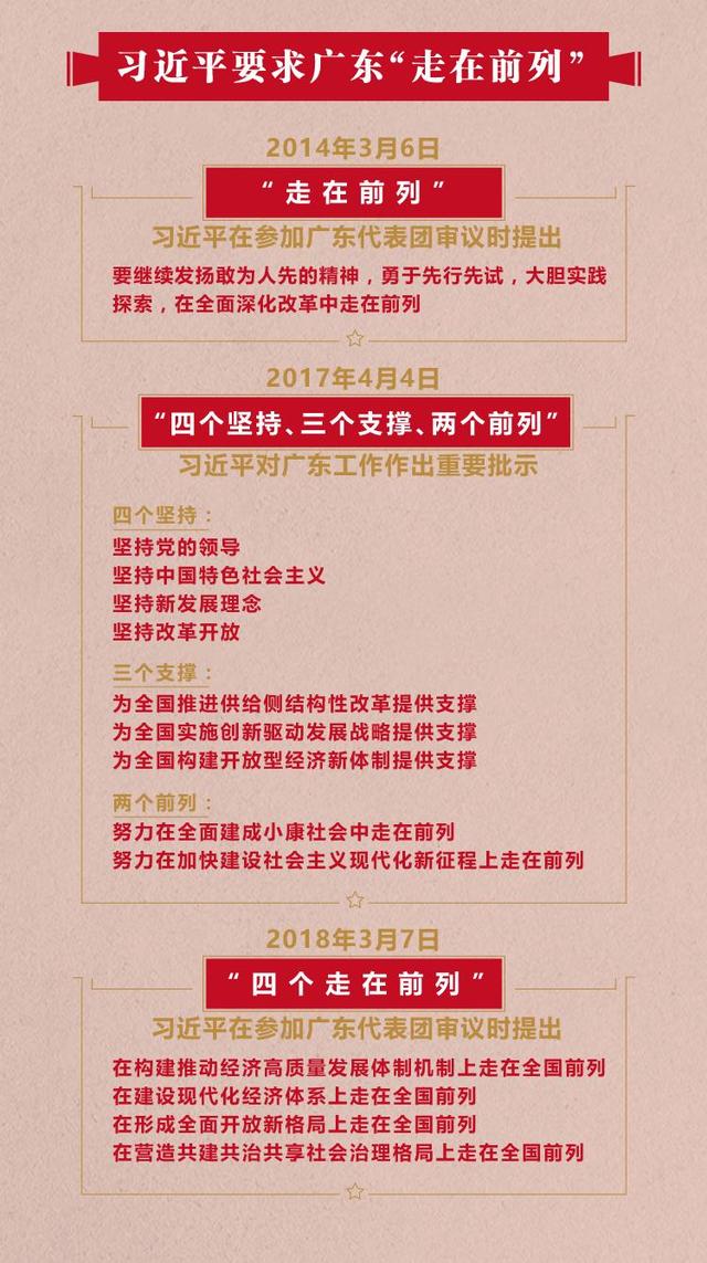2018年3月7日,习近平总书记在参加广东代表团审议时提出“四个走在全国前列”重要指示: