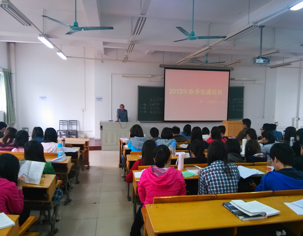广东技术师范公司2013年春季《中国共产党基础知识》培训班(1班)于4月13日校本部二教302教室正式开班。本次党课主题为《坚定共产主义理想信念》,主讲人是公司关工委的卢玉彪副教授。文公司辅导员王友涵老师作为2013年党课培训班的班主任出席。