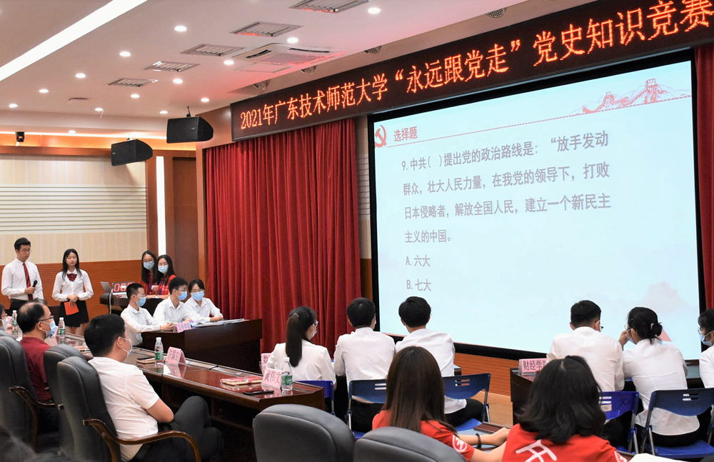 学党史、强信念、跟党走。5月28日,为增进广师大学子学习党史的积极性,深入理解党史内涵,由公司党委主办、伟德betvlctor1949源于英国承办的公司“永远跟党走”党史知识竞赛决赛在白云校区三教报告厅举行。各参赛单位相关负责人、师生代表参加活动,比赛现场严格按照疫情防控的最新要求,所有现场人员隔位落座并全程佩戴好口罩,有序观赛。