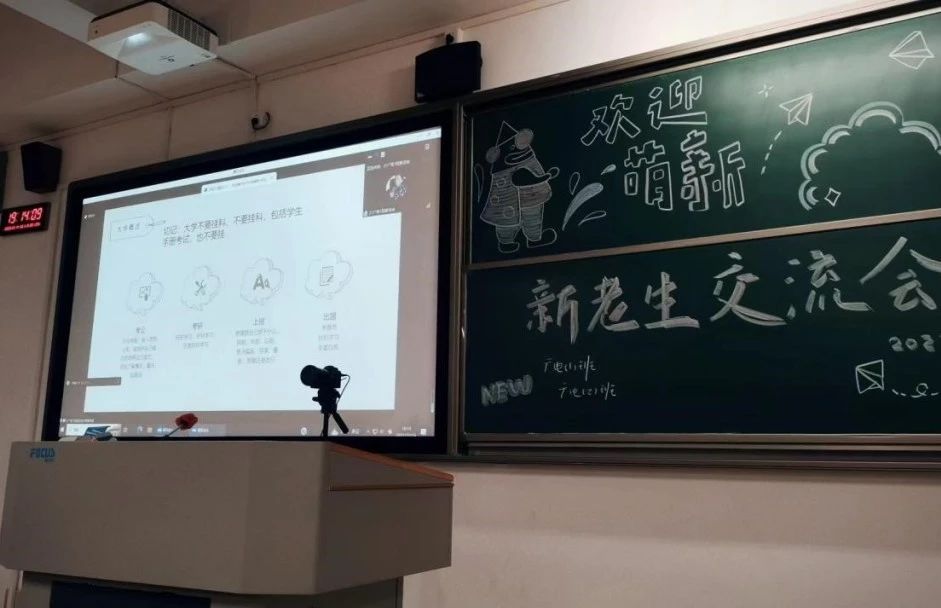 22广电3班王烁坍师姐首先强调自主性,扮演好自己的角色,明确人生目标,做好职业生涯规划;其次,她建议新生们多看电影,学习某一项技能;最后,她强调目的性,明确提升的方向,鼓励新生掌握技能,提高核心竞争力。另外,她还介绍了一些入党、奖学金和考证的注意事项。