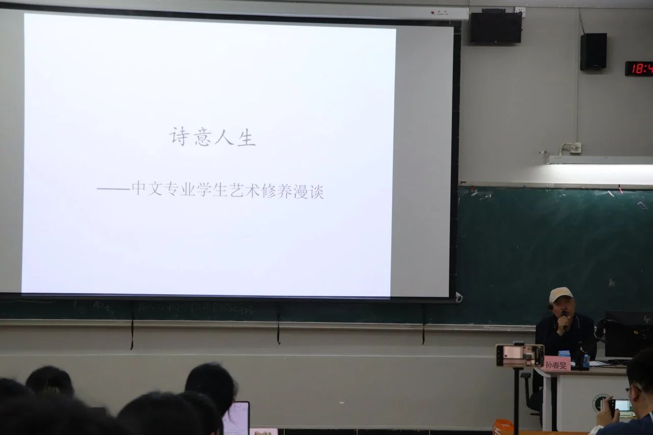 孙教授的讲述妙趣横生,不仅详细阐述了艺术理论,而且以自身经历为例,为同学们展示了自创的多首诗歌和摄影作品。