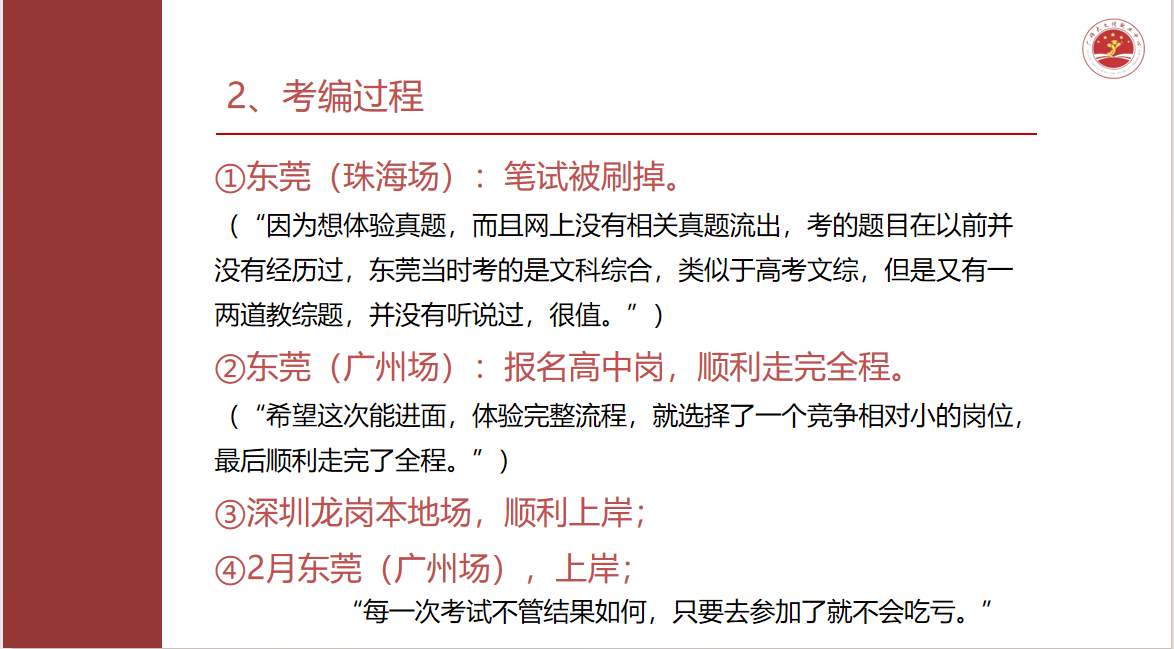 第四位亲临现场的师姐建议我们,在条件允许的情况下,可以向外省考编,减少压力,同时要注重笔试成绩。并衷心祝愿我们可以顺利考编上岸。