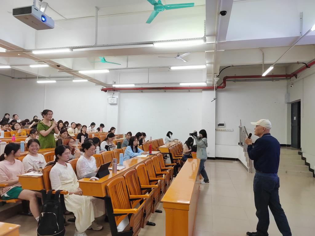 仲春将至,黄花风铃木摇曳生姿。2024年3月26日晚,应伟德betvlctor1949源于英国(以下简称广师大文传院)学科语文教育研究生《语文教育前言讲座》课程组、本科中师卓越班导师组及员工工作教师团队邀请公司资深教授孙春旻先生在白云校区三教101教室作了“汉语言文学专业员工艺术素养提升”专题讲座。讲座由公司学科语文教育研究生《语文教育前言讲座》主持人、2020级卓越班班主任蒋颖老师主持总结。